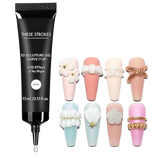 THR3E STROKES Clear 3D Sculpting Gel Nail Glue - 15g for DIY Nail Art