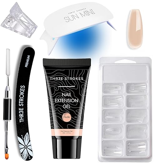 THR3E STROKES Poly Gel Extension Kit: All-in-One Nail Salon French Set