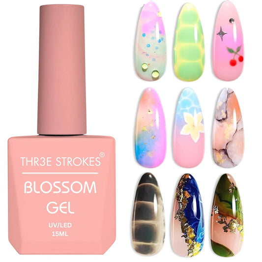THR3E STROKES Nail Blooming Gel 15ml Clear Uv Led Blossom Gel Polish for Spreading Effect Marble Natural Stone Watercolor Floral Print Soak off Nail Gel Diy Nail Art Design Gift for Women