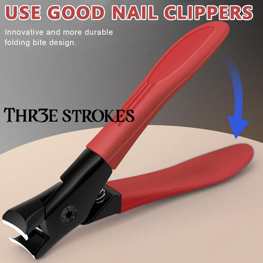 THR3E STROKES Thick Nail Clipper, Toenail Clipper with Long Handle Stainless Steel Nail Cutter for Tough Nails Thick Nails, Anti-splash Nail Clipper for Adults, Seniors, Manicure Nail Clipper, Red