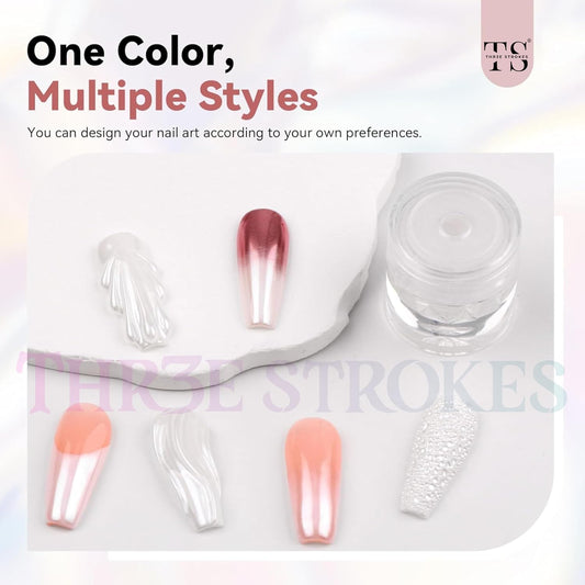 THR3E STROKES White Pearl Chrome Nail Powder - 1g Mirror Effect Chrome Powder for Gel Nails, Metallic Mermaid Chrome Nail Powder for Gel Polish, Pearl Nail Powder Glitter Dust Kit for Nail Art Decorations